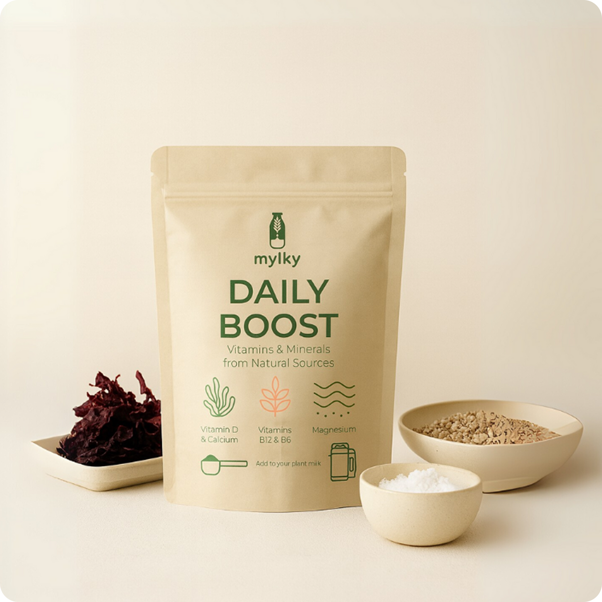 Rien de plus simple que d’enrichir ton lait végétal avec des vitamines issues d’ingrédients complets.